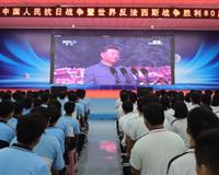 9月3日上午,滦州市职教中心全体师生在学校礼堂共同观看中国人民抗日战争暨世界反法西斯战争胜利80周年阅..